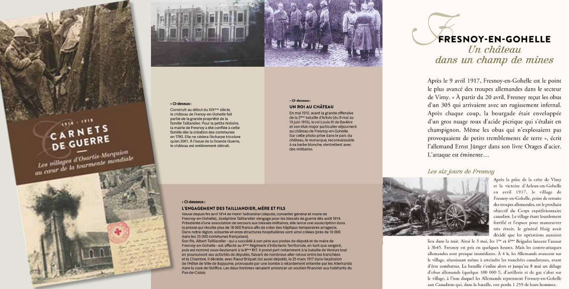 La commune de Fresnoy en Gohelle fut particulièrement touchée au cours de la première guerre mondiale, ce qui lui a valu de recevoir en 1924 La Croix de Guerre. Sous la violence des bombardements, le village et son Château furent entièrement détruit.